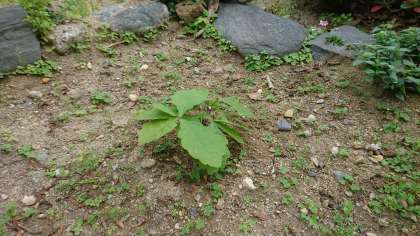 4月当初は全く葉はなかったのですが、ようやくこんなに大きな葉がでてきました。柏餅を包む、あの葉の形です。