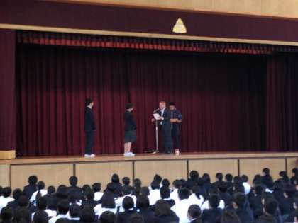 本日は、「いじめについて考える日」です。校長先生からは、「人には短所と長所があります。短所の方が目に入りやすいのですが、長所を探しお互い助け合って生活しましょう。」「いじめなどの大きな問題になる前には小さな問題がたくさんある。からかいや悪口など小さなことを起こさないことが大切です。」とお話がありました。