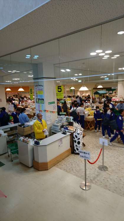 バーベキュー会場横のおみやげ物屋さんでの買い物です。雨も降ってきました。