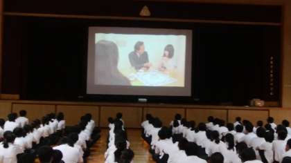 3年生は、4限目、一昨日の講話に続き、ビデオ「防ごう!性のトラブル」)を鑑賞して、性行動のあり方を考えています。