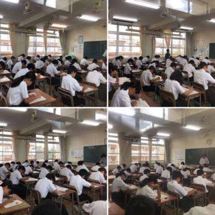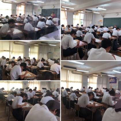 今日は、3年生が実力テスト、1・2年生が課題テストをしています。