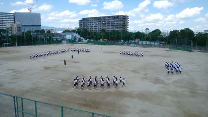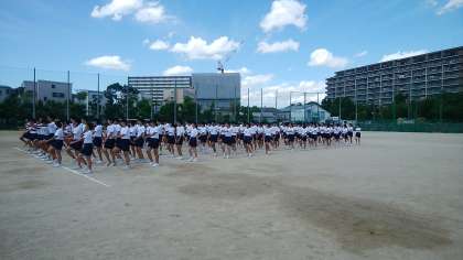 3年生は本日3限目、体育大会の行進練習中です。最後の体育大会、暑い中みんな真剣に練習しています。