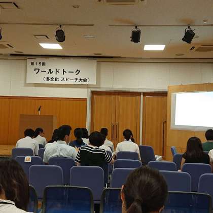 此花区の咲くやこの花中学校で多文化スピーチ大会が開催され、本校から2年生のフリオさんが参加しました。