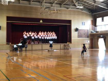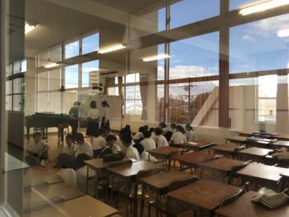 5限目に、合唱コンクールに向けて、ピアノがある部屋での練習をしました。