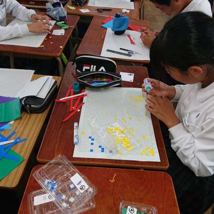 モザイクアート作成中。細かい作業です。