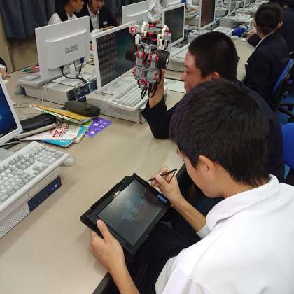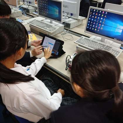 技術の授業で、タブレットとロボット(自動車)を使って自動車の動きをプログラミングするものです。