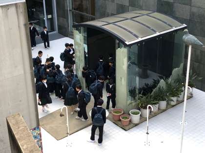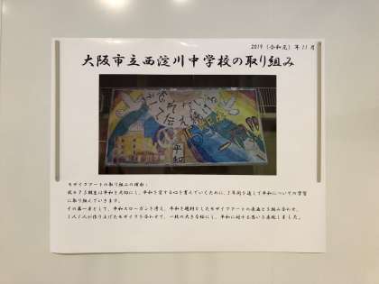 ピース大阪には、文化発表会に向けて一年生全員で作成したモザイク画の写真が展示されています。