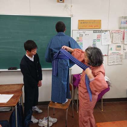 12/10家庭科の授業で、ゆかたの着付け(2年生) その2