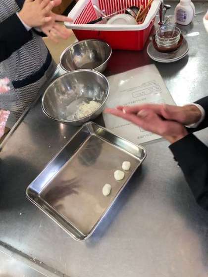 本日土曜授業、家庭科の時間に調理実習でみたらし団子をつくりました。