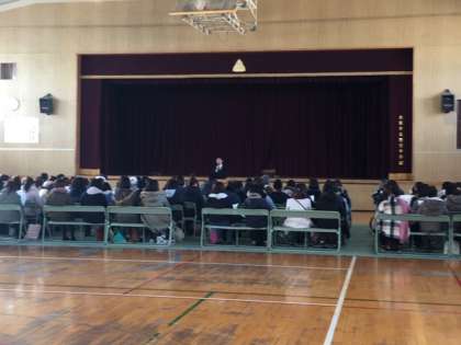 来年度の新入生の保護者を対象に、学校生活や事務手続などの話をしました。