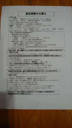 本日5限目、体育館での3年生の受験事前指導の様子です。「高校受験の心構え」のプリントで確認しています。みんな緊張の面持ちです。