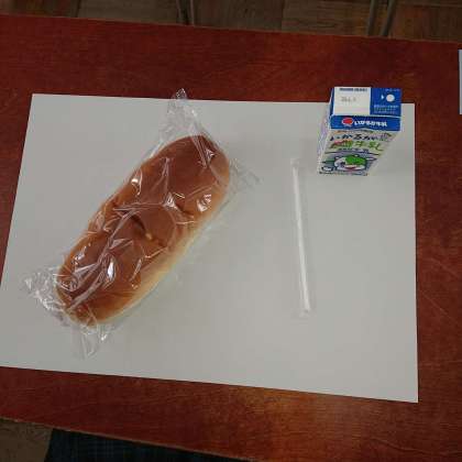 パンと牛乳のみですので、やや物足りなさを感じます。2週間後には、本来の給食に戻ります。