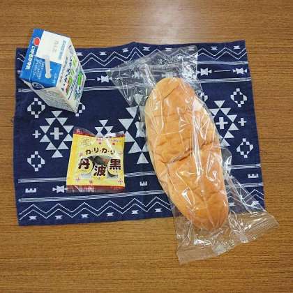 パン給食の最終日です。おさつパン、いり黒豆、牛乳です。