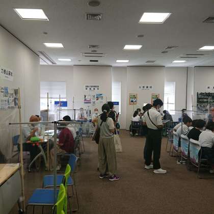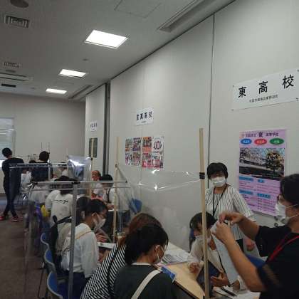 コロナ感染予防策をとりながら3日間、西淀川区役所で高校説明会がありました。最終日は、入場制限をするほどの盛況振りでした。