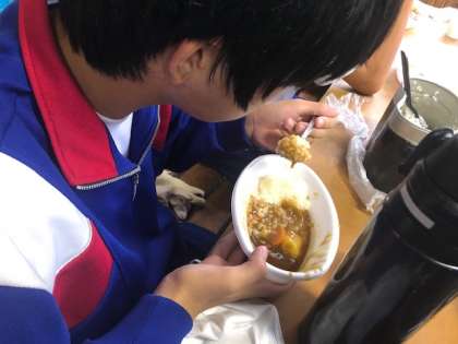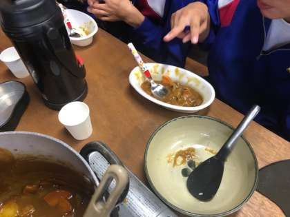 少し早いですが、自分たちで作ったカレーで昼食です。