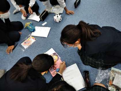 3年家庭科で「幼児の遊びについて考える」単元で授業を行いました。