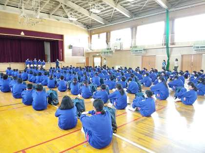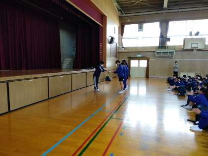 全員無事学校へ帰ってきました。クイズラリーの表彰の様子です。
