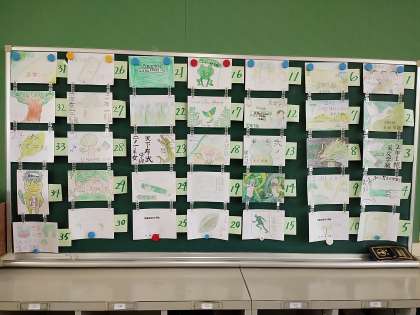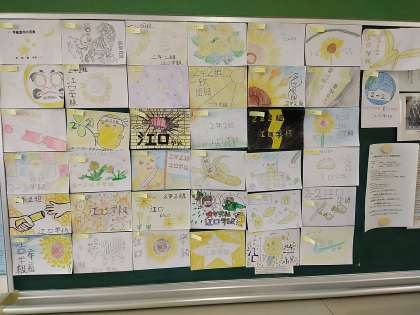 本日2年生6限目特活の様子です。中間テストの振り返りや年間スローガン・学級旗デザインを決めています。学級旗は1組と2組のようすです。