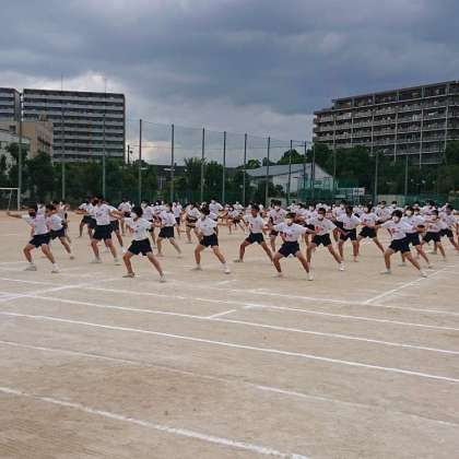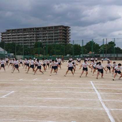 集団演技「ソーラン」の動き合わせの練習をしました。