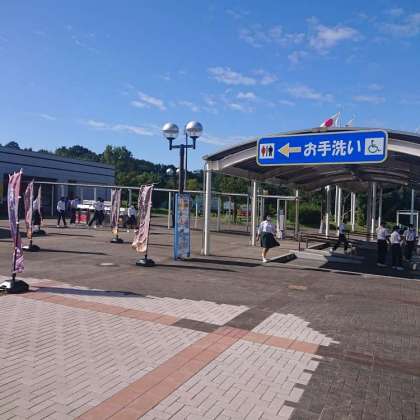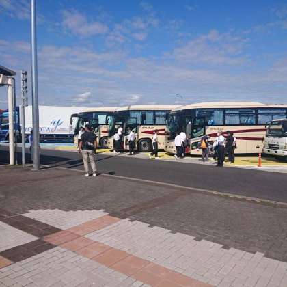 渋滞で、30分遅れで休憩です。いい天気です。