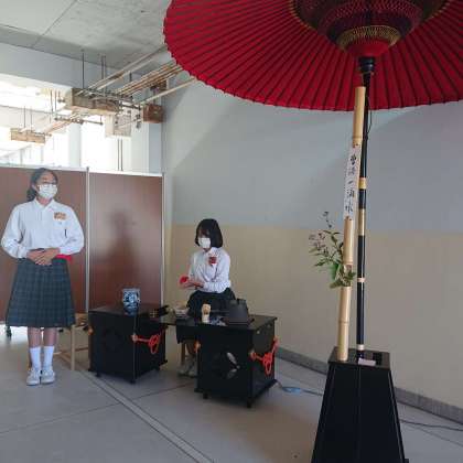 我孫子中学校で総合文化祭が開催され、本校から茶道部がお手前を、技術・家庭科からは作品の出展をしました。