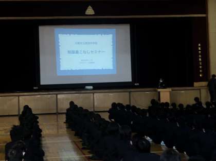 本校の制服をつくってくださっているトンボより講師をお招きし、制服着こなしセミナーを行いました。