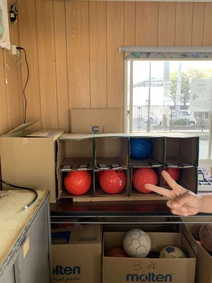 3枚目:体育委員が決まるまでは、3年生がボールの貸出しを手伝ってくれています。