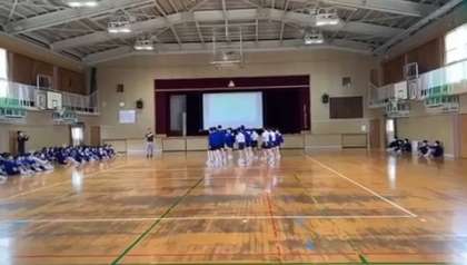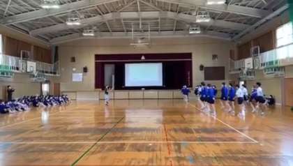 3年3,4組の模範演技は、1回目からぶつからずに歩くことができたようですが、3,4組も1回で成功しました!