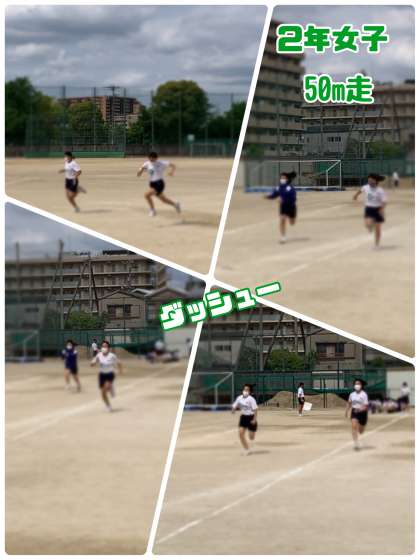 女子はグラウンドで50mのタイムを計っていました。「最後まで走りぬく」という先生の指導のとおり、みんなしっかり走っていました。