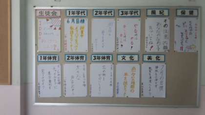 各生徒委員会の月間目標です。目標達成のため、皆さん頑張りましょう。