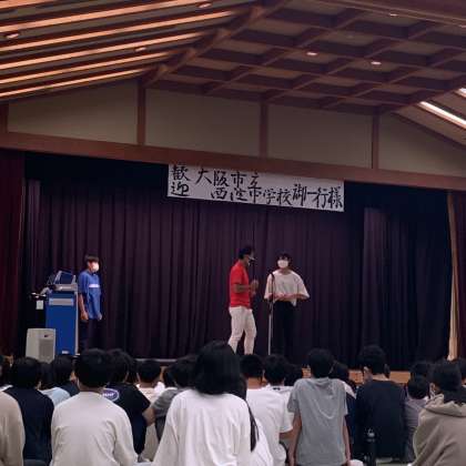 漫才やダンスなど楽しい出し物が続いています。あれ?生徒以外にも出演者が?
