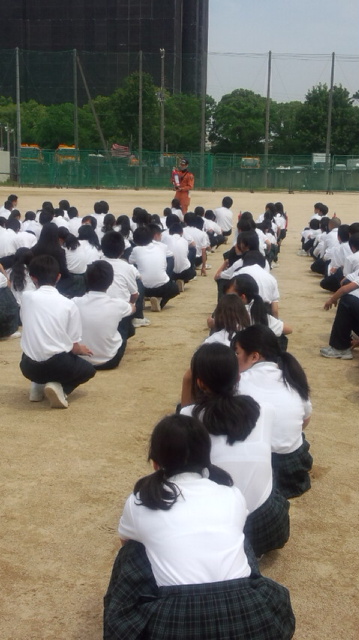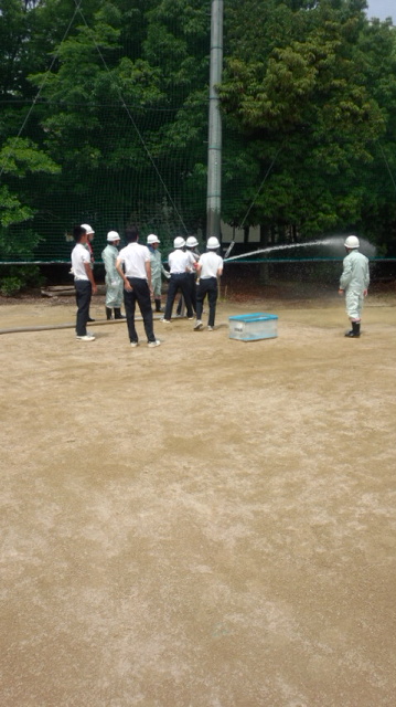 1年生は消火器の使用訓練、2年生は煙体験、3年生は可搬式ポンプの使用訓練を行いました。