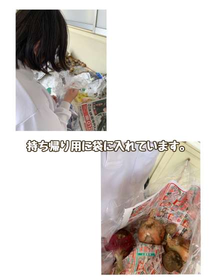 今日は収穫日。たくさんの玉ねぎとじゃがいもがとれました。キャリア教育の一環として、栽培した野菜を丁寧に袋分けしています。