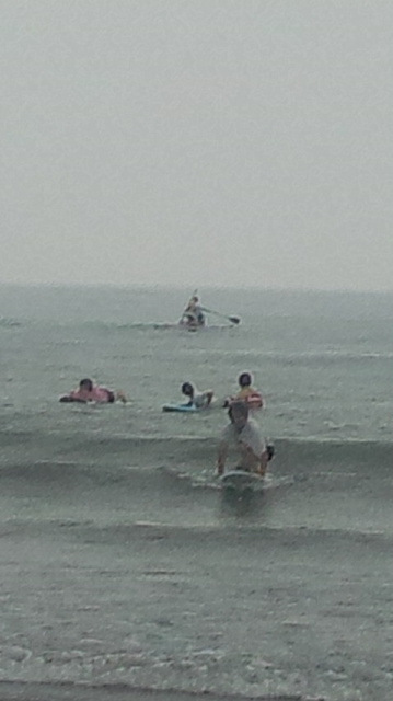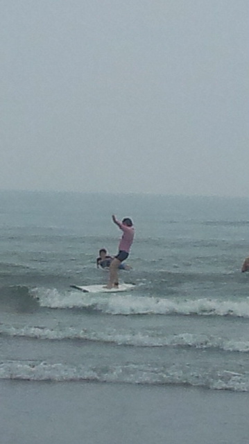 サーフィン体験の様子です。立てるまで何度もチャレンジしています。