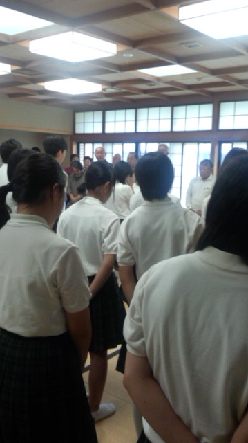 閉校式です。学代の女子生徒が泣きながら感謝の言葉を述べていました。大変感動しました。