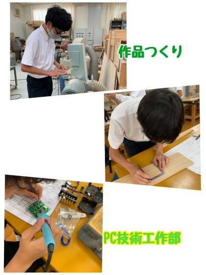 PC技術工作部は、文化発表会に向けた作品づくりです。機械や道具の使い方もさすが手慣れています。