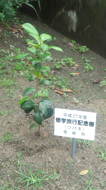 修学旅行先の宮崎市からツバキをいただき、正門付近に植樹しています。ご来校の際に、ぜひご覧ください。