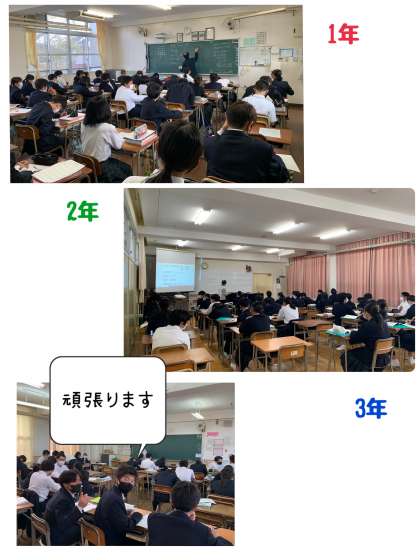 各学年、明日から始まる期末テストに向けて集中して授業に取り組んでいました。3年生からは「頑張ります」という力強い言葉ももらいました。期待していますよ!