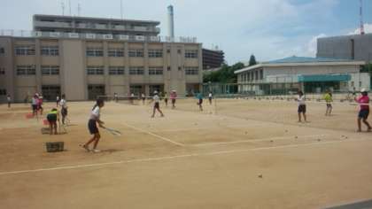 ソフトテニス部は、明日の4ブロック大会に向けて、頑張って練習に取り組んでいます。