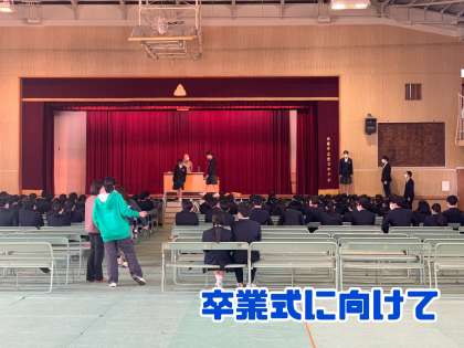 3年生は午後から卒業式の練習を行っていました。卒業式まであと4日。最強で最高の卒業式をめざしてみんなで頑張っています。