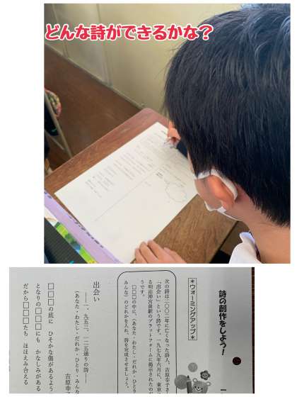 国語の時間では、詩の勉強をしています。自分自身の思いを詩を作成し表現することに挑戦です。どんな詩ができるのかな?楽しみですね。