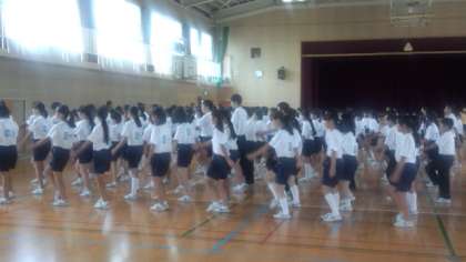 本日より10月2日の体育大会に向けての学年練習を始めています。本日は1年生でしたが、これから2・3年生や全体練習も行っていくことになっています。体操服などの忘れ物が無いように気をつけてください。