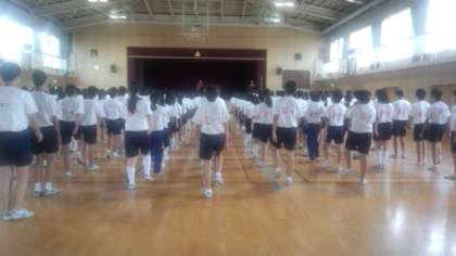 本日、3・4時間目に3年生の学年練習を行いました。「行進」の練習の様子です。