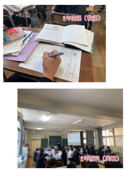 2年理科の授業では実験を行っていました。安全に実験を進められるようにしっかりと説明を聞いていました。