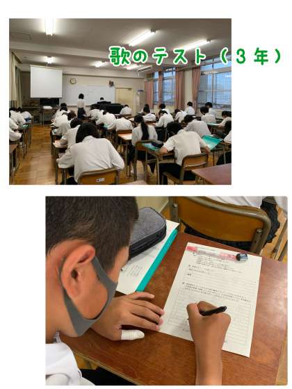 3年生の音楽は歌のテストです。テストを受ける前にどんな点を頑張りたいか、また、歌のテスト後にはふりかえりを書いていました。
