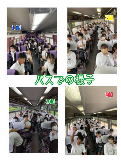 各クラスのバスでの様子です。バスレクをしたり、おしゃべりをしたり、楽しいひと時を過ごしています。
