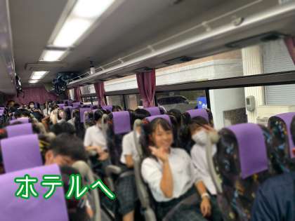 原爆資料館などを巡る活動を終え、今からホテルに向かいます。バスの中は賑やかです。