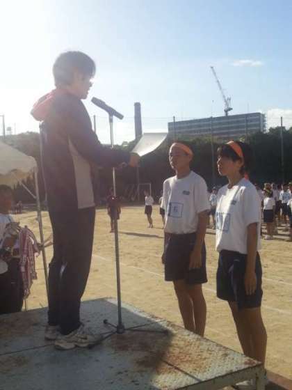皆さん、お疲れ様でした。本日の体育大会は、若さと情熱が結集したすばらしいものとなりました。3年生の皆さんにとっては、最後の体育大会でしたが、いつまでも心に残るものとなったと思います。また、生徒会ならびに係生徒の皆さん、本当にありがとうございました。皆さんがしっかり責任を果たしてくれたからこそ、スムーズに大会が運営できたと思います。感謝しています。最後になりますが、ご来賓ならびに保護者の皆様、本日は早朝よりご来校いただきまして、誠にありがとうございました。10月30日(金)には、文化発表会を実施いたします。ご来校を心よりお待ち申しあげます。