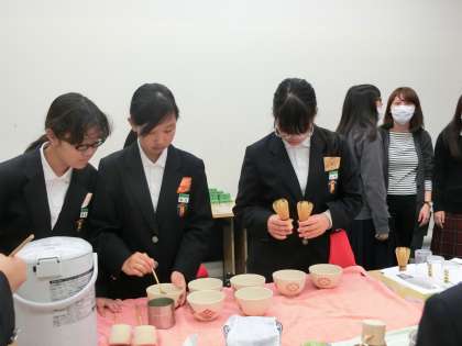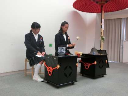 17日(土)、鶴見区民センターで開催された大阪市立中学校総合文化祭のなかで、本校茶道部がお点前を披露しました。