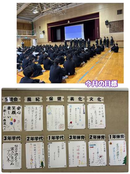 その後、「TPOについて」校長より講話がありました。そして、各委員会の代表から今月の目標について発表がありました。